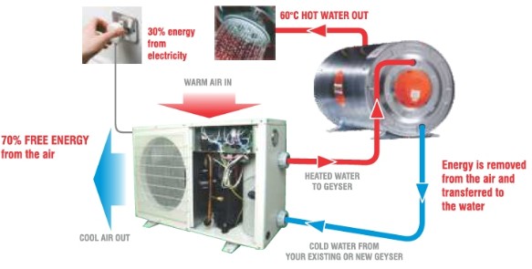 Heat pumps thus can heat your geyser water for up to 70% less cost of electrical elements.